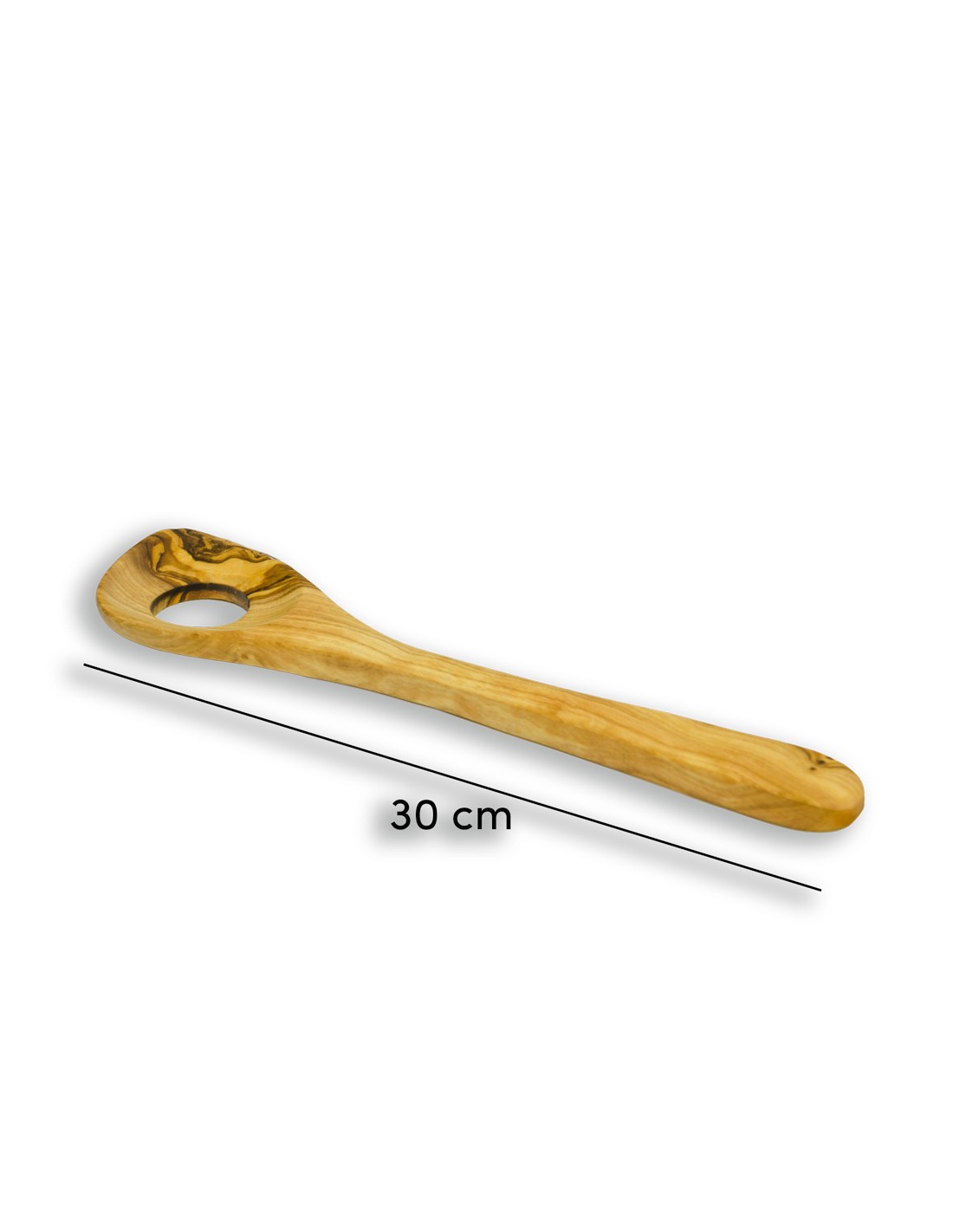 Kitchen utensil: Olive wood spoon for stirring, mixing or serving food.