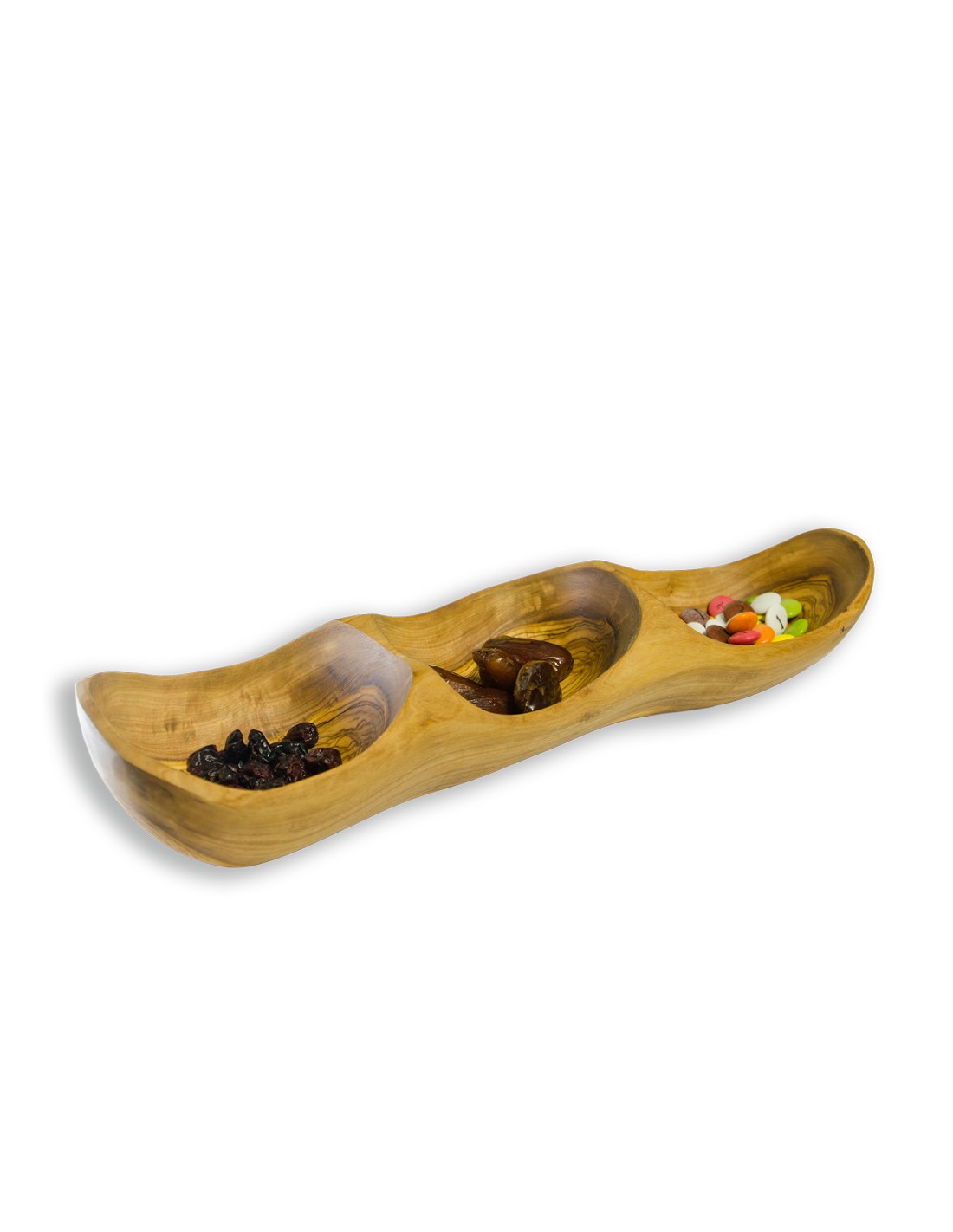 ELONGATED multipurpose bowl made of olive wood in a handcrafted way. Ideal for everyday use in our kitchen, serving as a container for our food. Also for decorative use in our homes, taking into account the natural beauty of this precious wood from the olive tree.