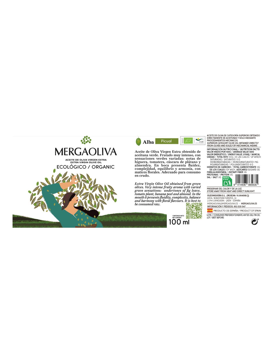 Aceite de Oliva Virgen Extra ALBA, variedad PICUAL. ECOLÓGICO.