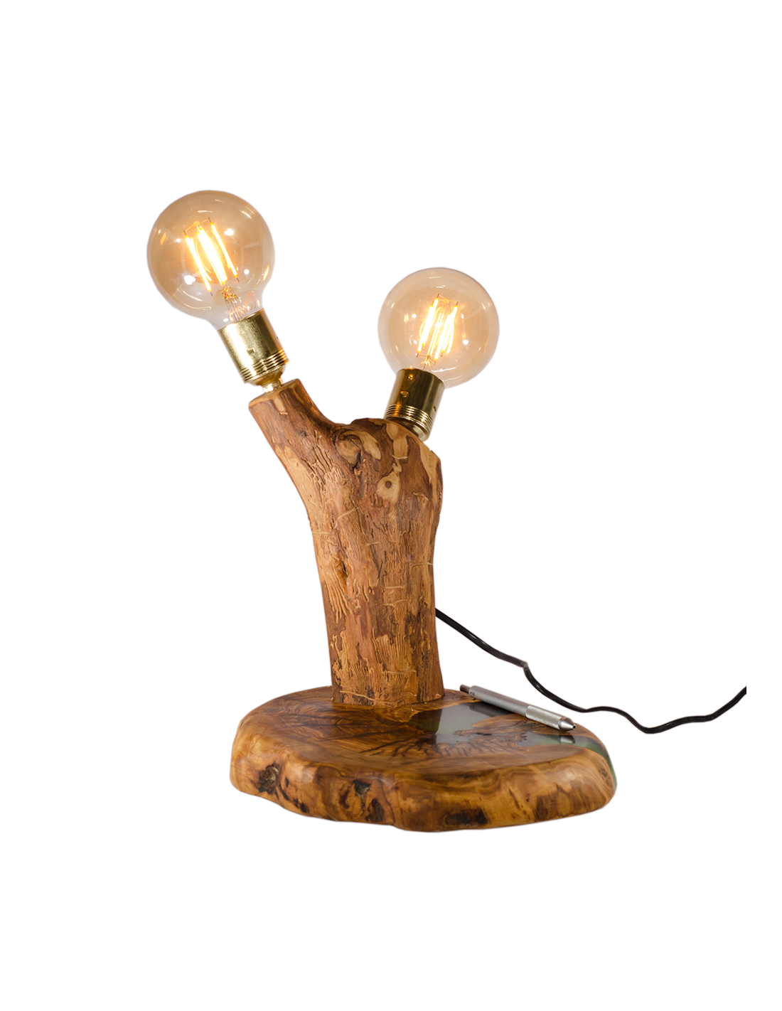 Lámpara realizada con troncos de olivos centenarios y resina epoxi.