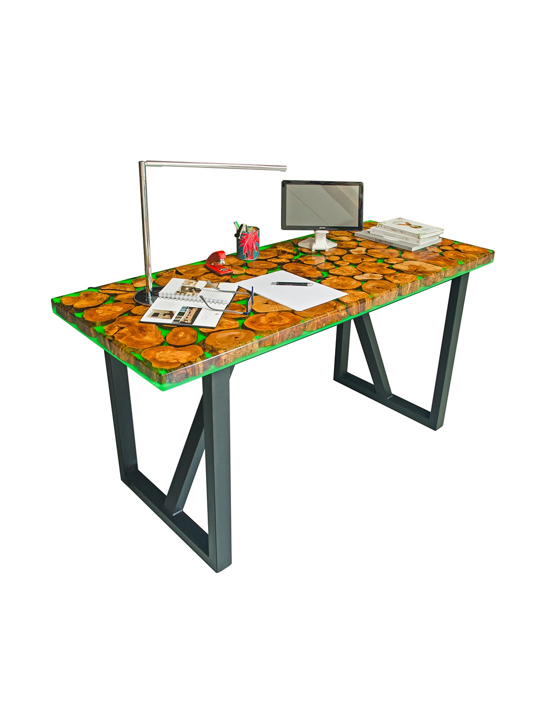 Table de bureau ou de salle à manger, fabriquée avec de la résine d'OLIVIER et d'EPOXY :