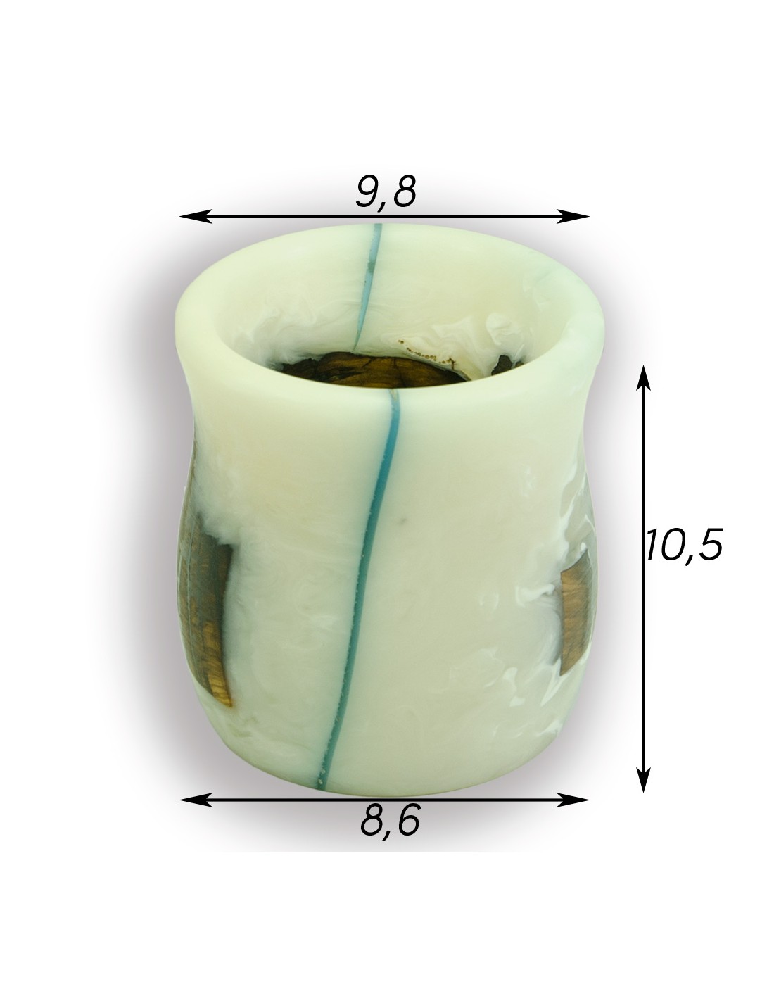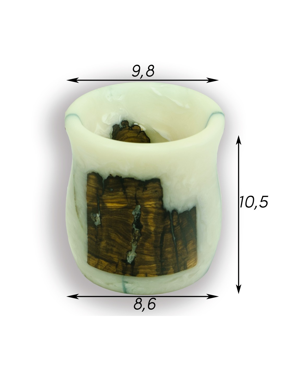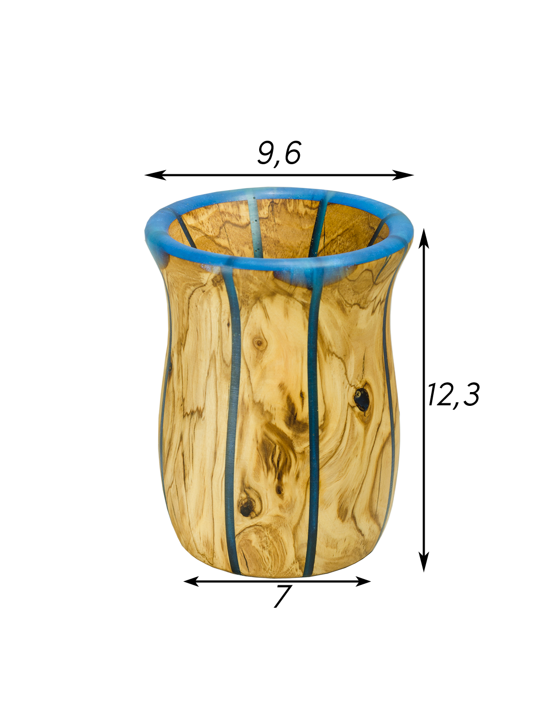 Le bois d'olivier se distingue par sa nature même : c'est l'un des plus beaux bois de notre planète. La résine offre une large combinaison de couleurs, qui, alternées ou fusionnées avec le bois, nous offrent ces récipients (bols, tasses) à l'attrait singulier.