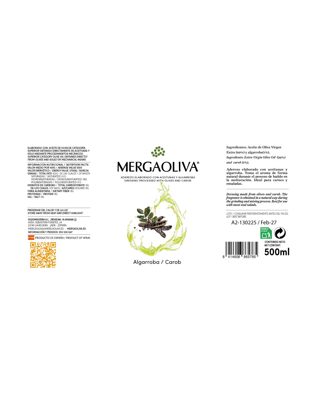 Huile balsamique aromatisée au CAROUBE, bouteille de 500ml.